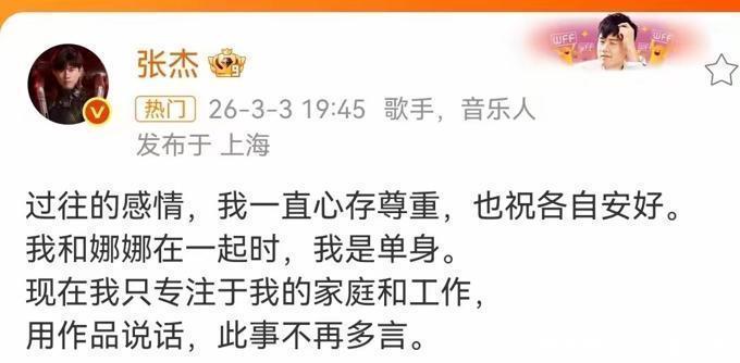 在段曦的长篇文章发酵之后,张杰的反应非常迅速。他在当晚发布了一份声明,明确表示在与谢娜交往的时候,他确实是单身,并没有出轨的行为。对于与段曦的过去,他表示“一直心存尊重,也祝各自安好”,态度坚决而简洁,完全没有给段曦留下任何空间