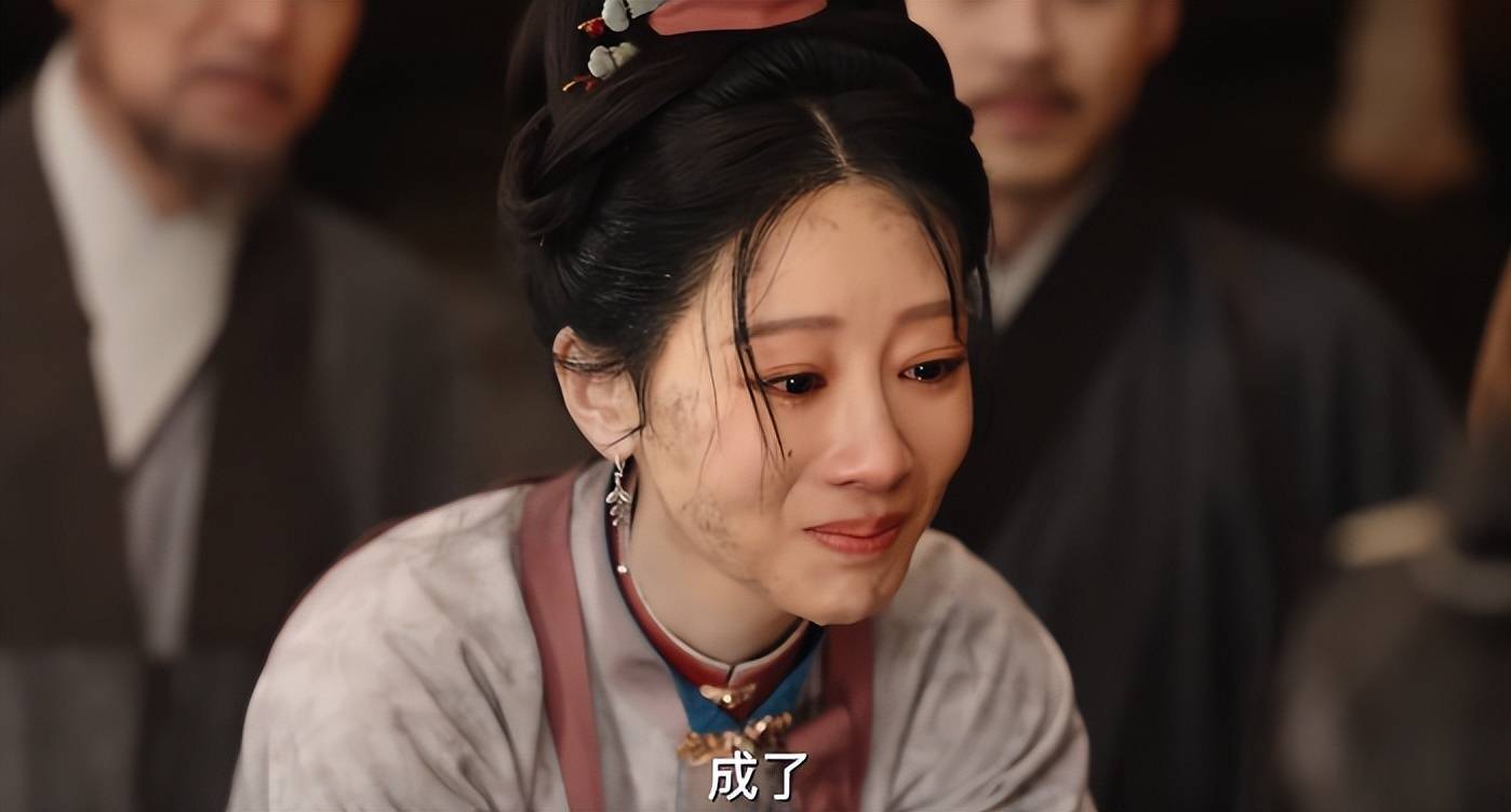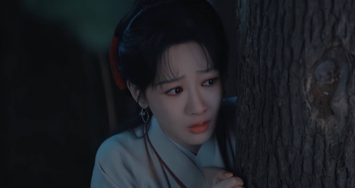 初次登场,眼见自己家族被抄,躲在树后面泪眼朦胧,既无辜又无措,演活了天真烂漫的小女儿。