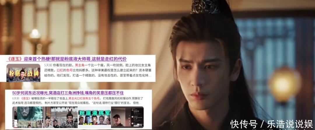 《逐玉》被曝投资的一半砸在了妆造上,男主光口红就有五个色号,打戏靠鼓风机和慢动作,连马都是假的,这导致我们看到将军不像将军,像沙场模特,战争戏不像战争戏,反而像古装写真集。
